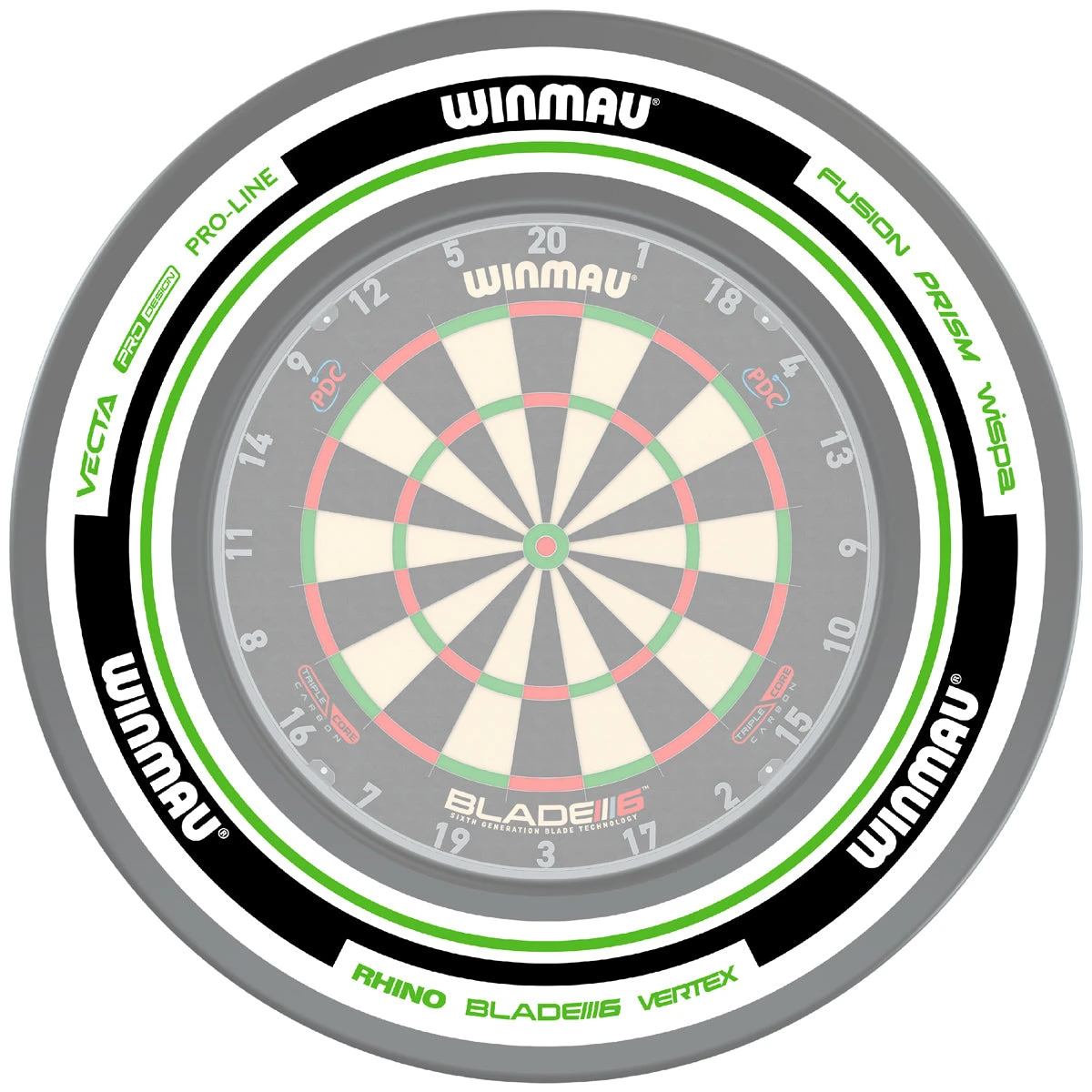 Winmau Advance White & Green dartboard surround. Suitable for all Winmau bristle dartboards. Perfect for home or club use.
