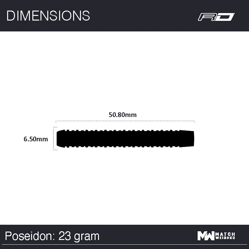 Triple precision milled for precise and consistent grip, Poseidon’s electric blue essence leads the way in modern dart design and freedom of throw