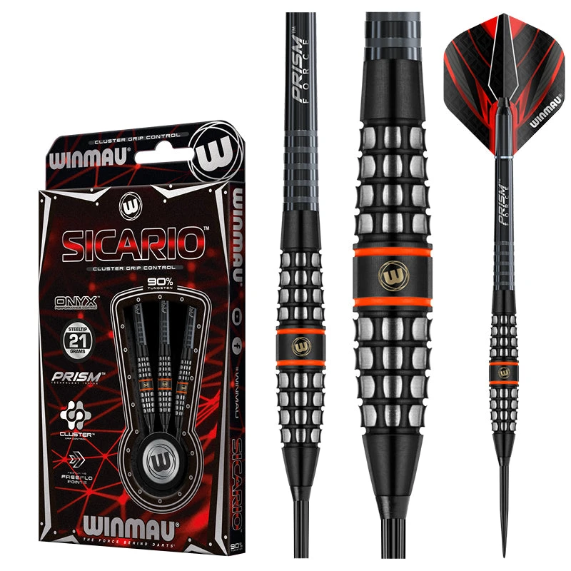 Winmau’s latest and greatest design of choice for serious players. Sicario features cutting-edge unique mini-scallop cluster grip technology, giving your fingers the sweetest feel ever and electric control, making these darts our most connected design. Finished with a co-ordinated tri-colour scheme these striking darts combine style, innovation and ultra-modern performance all together.