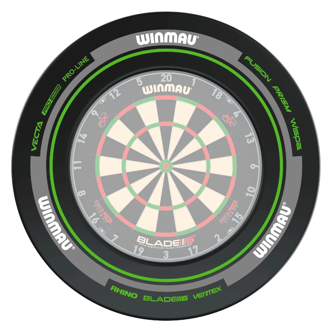 The Winmau Advance Black/Green Dartboard Surround fits all Winmau bristle dartboards, offering stylish protection for any home or club setup. Built for durability and a sleek appearance, this surround is ideal for players who want a professional look and dependable dartboard protection.