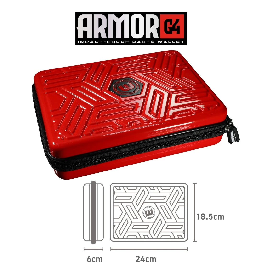 The Winmau Armor G4 Dart Wallet – Red is a spacious and modern impact-proof dart wallet designed to securely protect your darts and accessories with style. It is ideal for players seeking durability and sleek organization on the go.