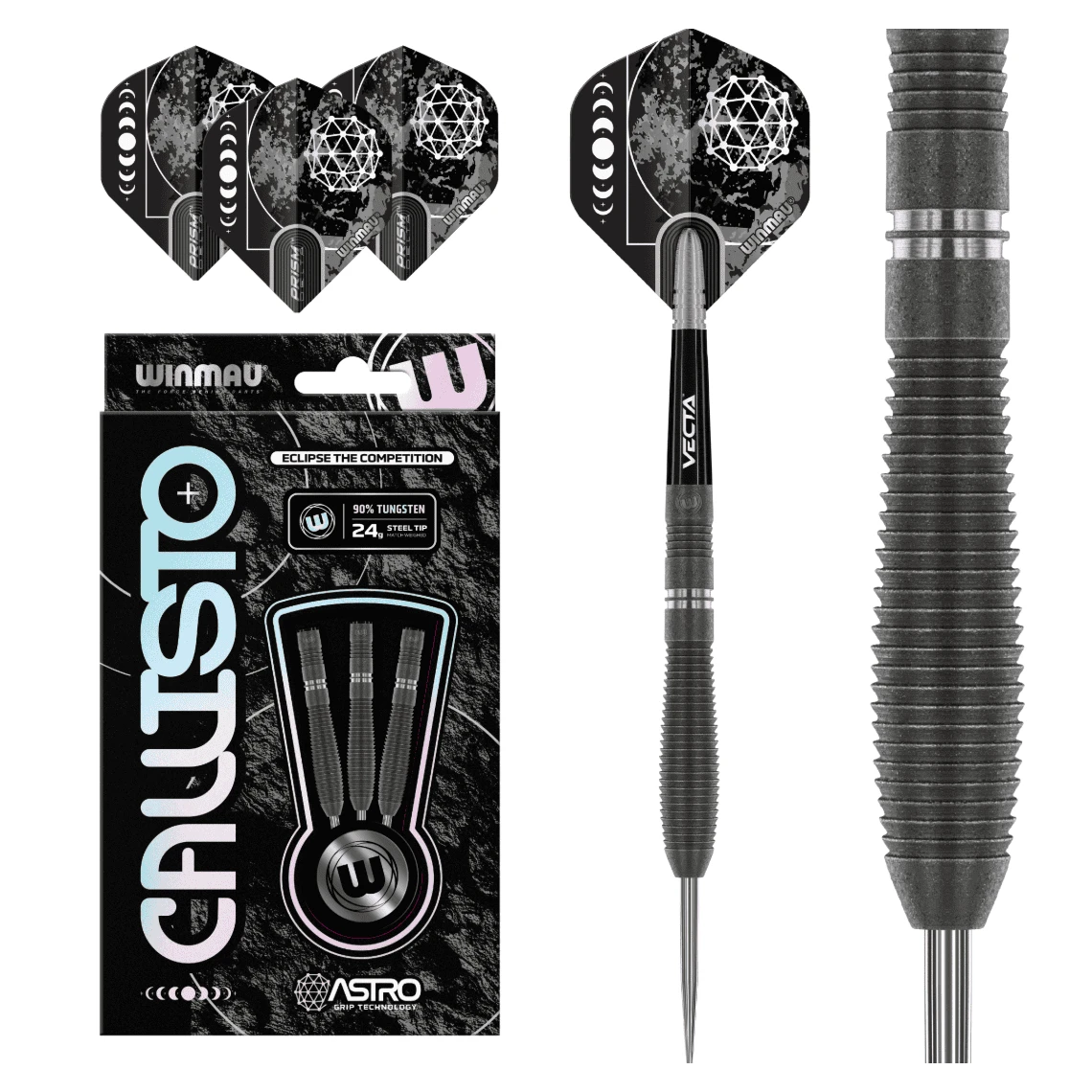 Outshine the competition with Callisto’s high-performance Astro-Grip technology. Designed with three tour-proven barrel profiles, this setup empowers players of all levels to reach new heights, thanks to its advanced atomized finish. Complete with silver Vecta shafts and Prism Delta flights, Callisto offers one of the most sophisticated dart setups available.