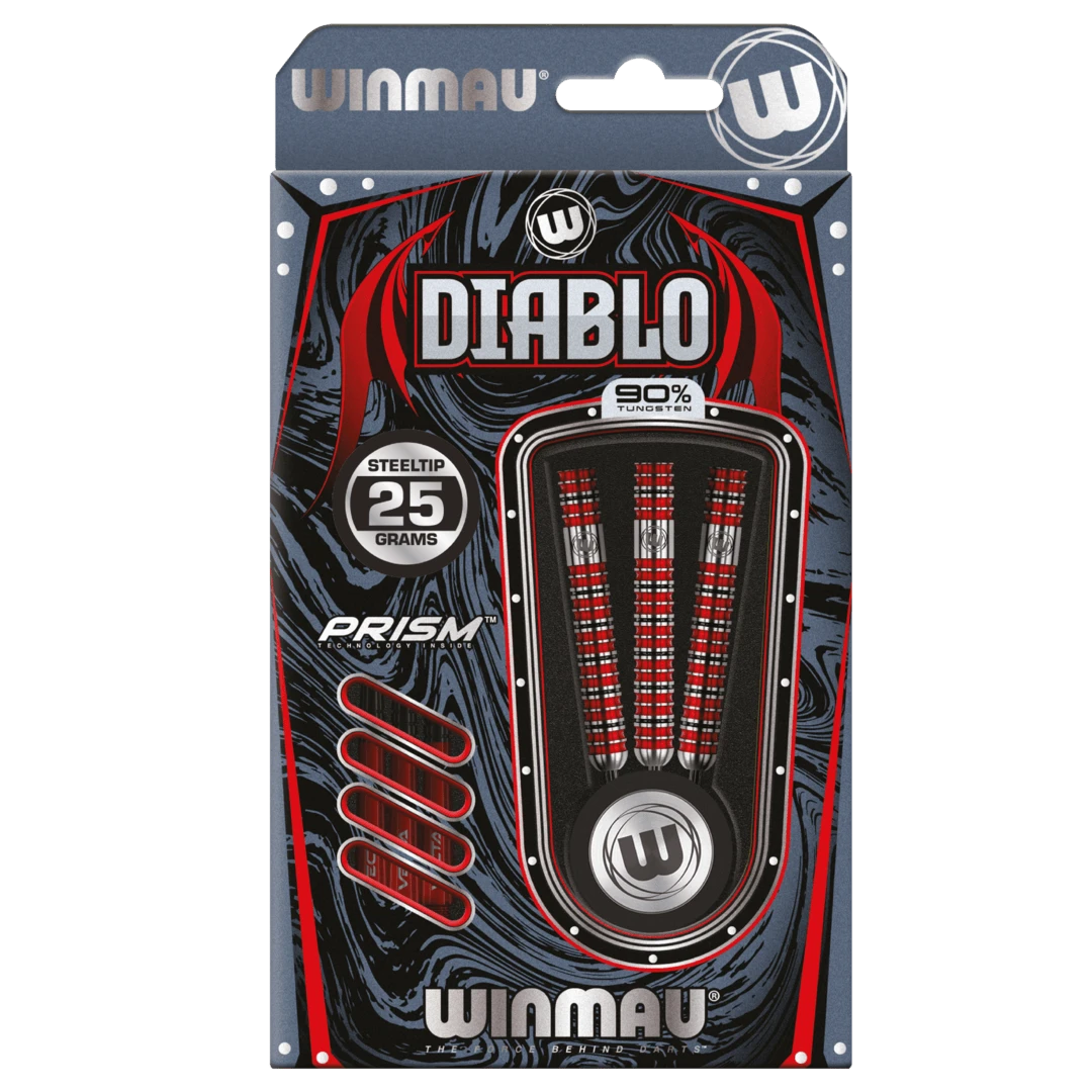 Winmau Diablo, featuring tour-proven profiles, stands as one of our most accomplished dart ranges to date. Equipped with the latest even-flow double ring grip technology, it ensures an effortless throw every time. Crafted through years of expertise and aided by computer design, Diablo boasts ultra-modern sleek styling with exceptional grip control.
