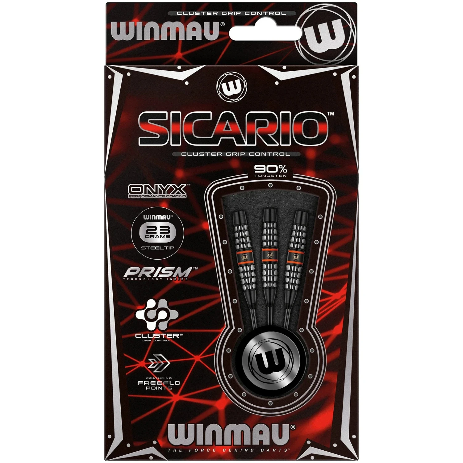 Winmau Sicario 23g Darts – Our latest and greatest design of choice for serious players. Sicario features cutting-edge unique mini-scallop cluster grip technology, giving your fingers the sweetest feel ever and electric control, making these darts our most connected design. Finished with a co-ordinated tri-colour scheme these striking darts combine style, innovation and ultra-modern performance all together.