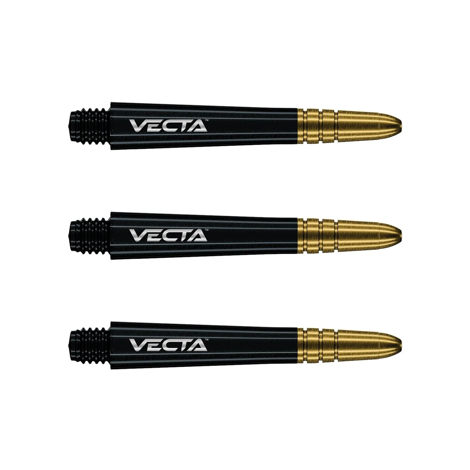 Winmau Vecta Intermediate Black Gold Polycarbonate Dart Stems – Tour Calibre composite shafts combine a high impact Polycarbonate body fused with low density aluminium alloy tips. Streamlined, profiled and machined with extra deep slots for ultimate flight retention. Tested by Winmau professional players, the new Vecta shafts provide ultimate in-flight stability.