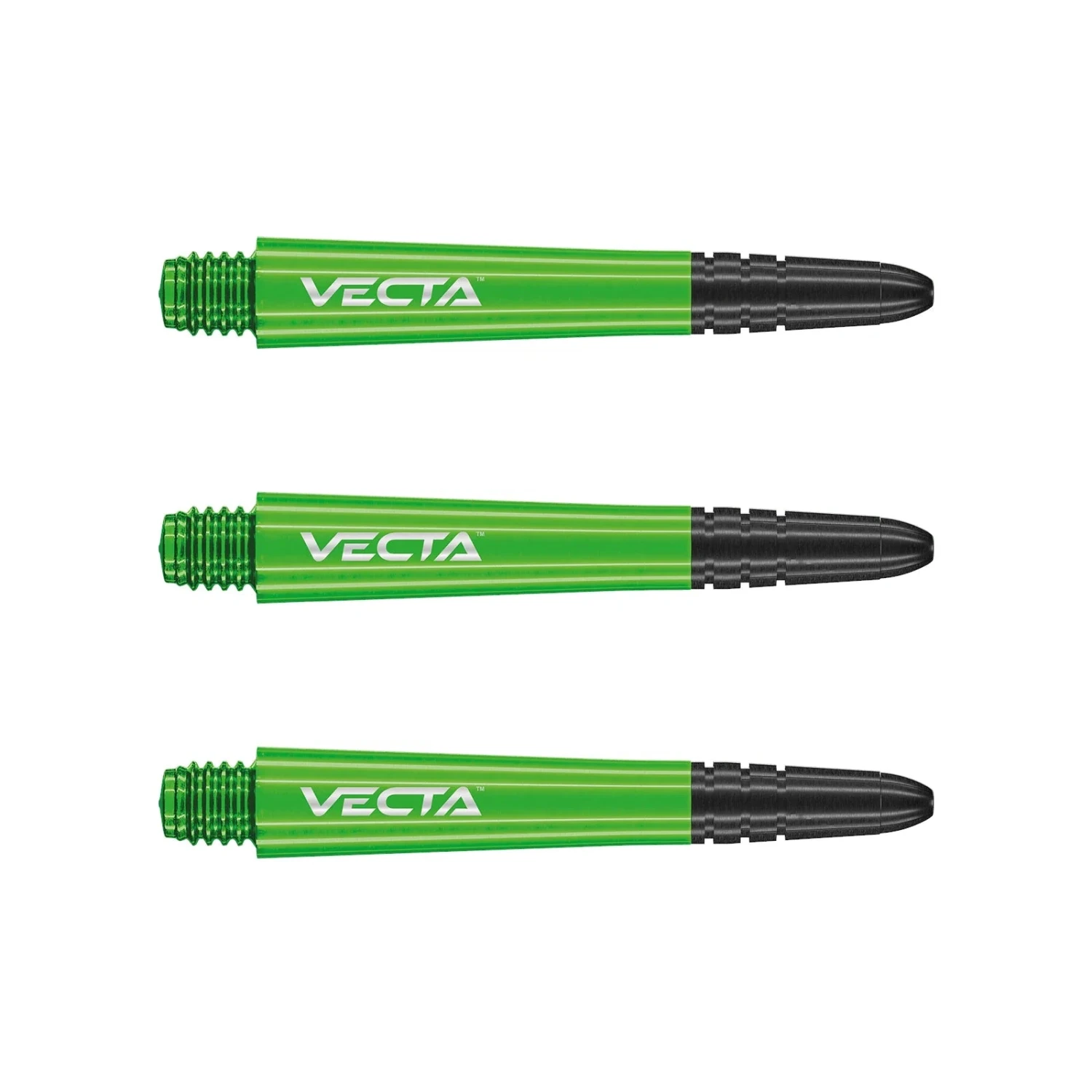 Winmau Vecta Intermediate Green Polycarbonate Dart Stems – Tour Calibre composite shafts combine a high impact Polycarbonate body fused with low density aluminium alloy tips. Streamlined, profiled and machined with extra deep slots for ultimate flight retention. Tested by Winmau professional players, the new Vecta shafts provide ultimate in-flight stability.