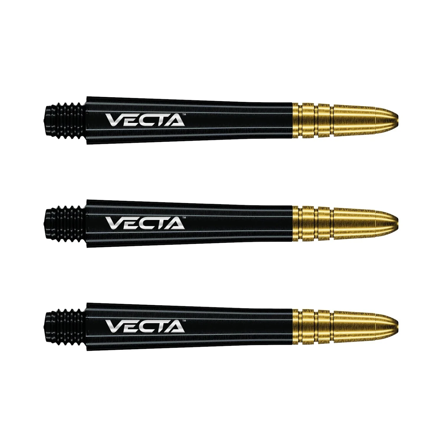 Winmau Vecta Medium Black Gold Polycarbonate Dart Stems – Tour Calibre composite shafts combine a high impact Polycarbonate body fused with low density aluminium alloy tips. Streamlined, profiled and machined with extra deep slots for ultimate flight retention. Tested by Winmau professional players, the new Vecta shafts provide ultimate in-flight stability.