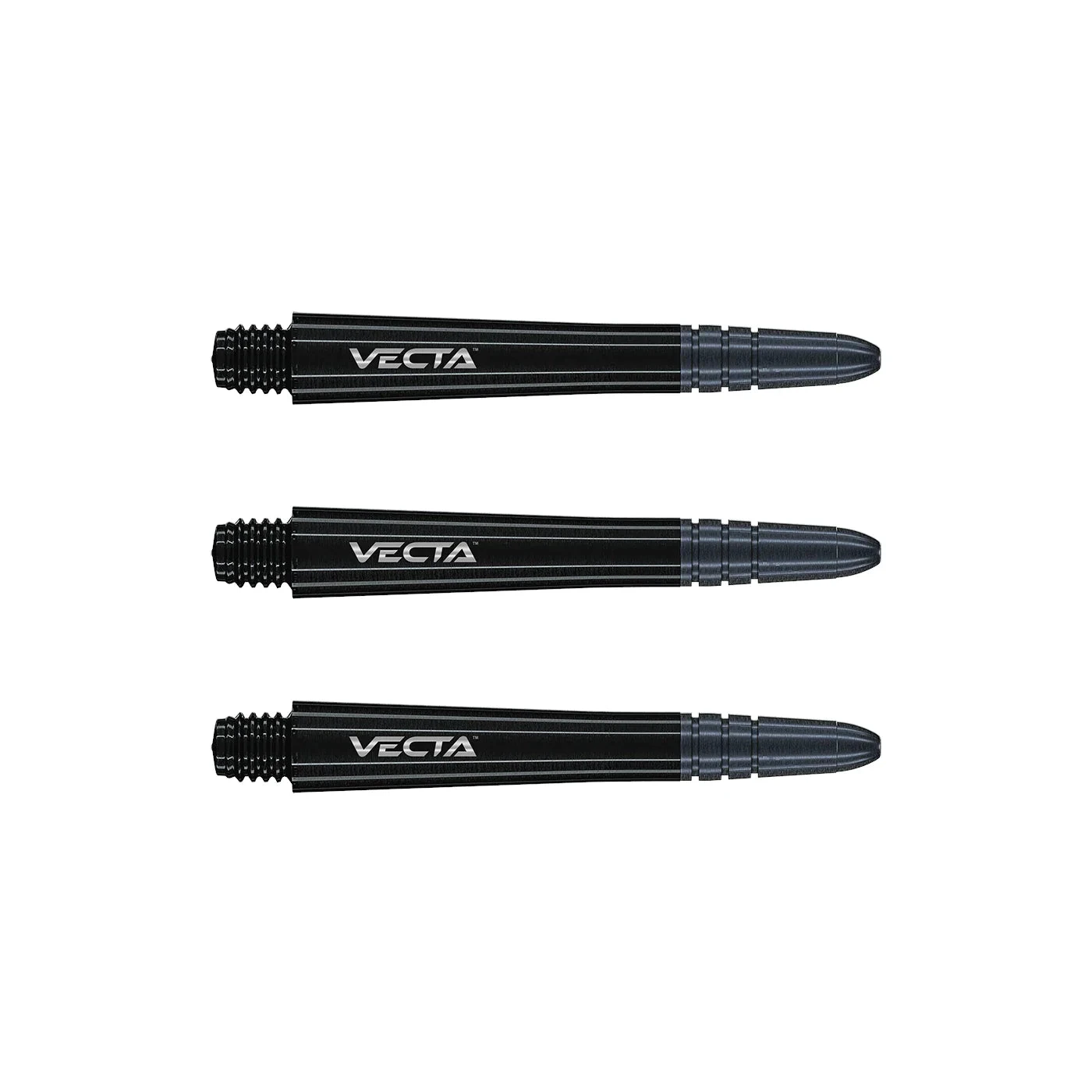Winmau Vecta Medium Black Polycarbonate Dart Stems – Tour Calibre composite shafts combine a high impact Polycarbonate body fused with low density aluminium alloy tips. Streamlined, profiled and machined with extra deep slots for ultimate flight retention. Tested by Winmau professional players, the new Vecta shafts provide ultimate in-flight stability.