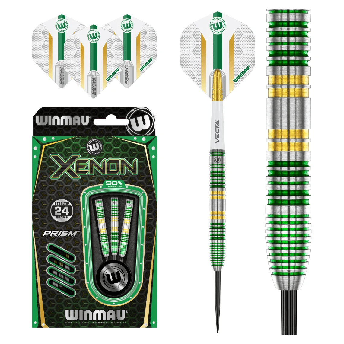 Using the Winmau Xenon 90% Tungsten Darts 23g, whether aiming for trophies or playing for pride, the Xenon’s multi-ring grip is precisely engineered to enhance extension and accelerate each throw. Finished with a striking iridescent green and gold, this modern classic incorporates innovations from major championships. Xenon is designed to deliver peak performance, supporting the complex biomechanics behind every perfect dart.